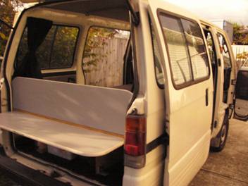 Comments: this little carry van was decked out to be a camper, bedding, food in back. it had red fairy seats and a yellow daisy on the back.