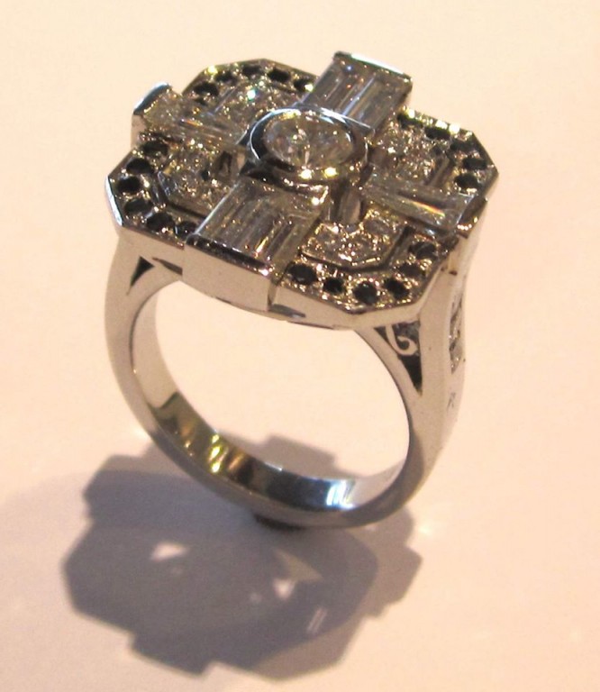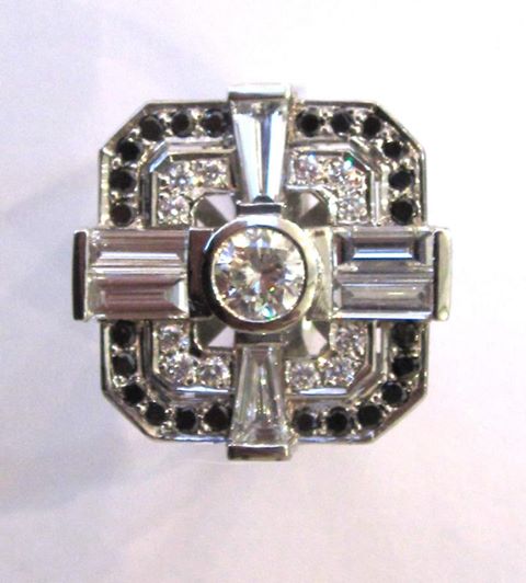 Comments: White gold art deco ring (top only) diamond and black diamond
